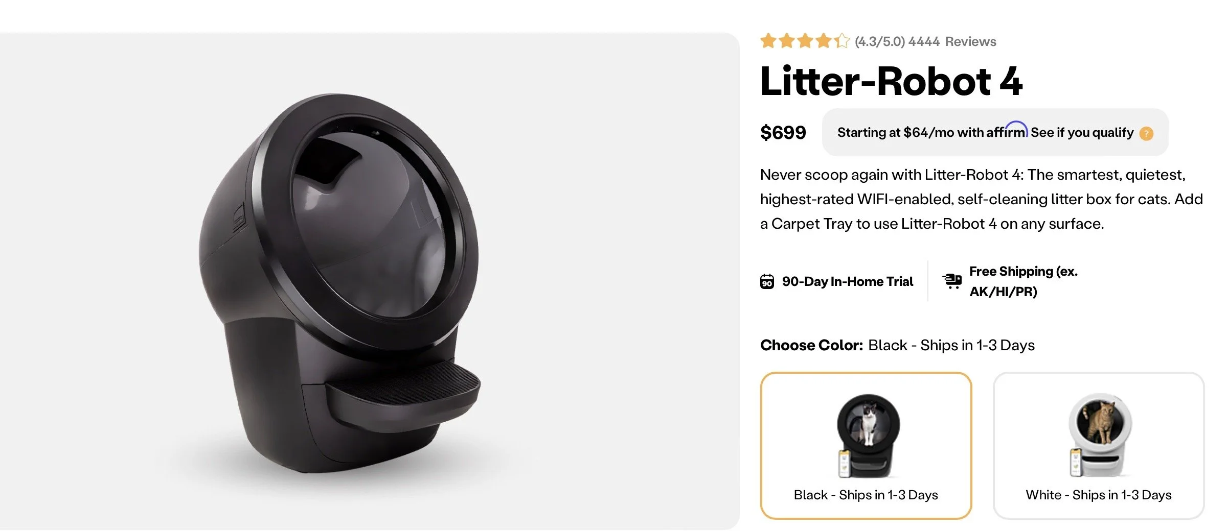 Enter the Litter-Robot 4, a high-rated, WIFI-enabled, self-cleaning litter box designed to handle the demands of multiple cats. Despite the initial investment, this futuristic litter box quickly became a game-changer. The well-engineered design resolved our issues and significantly reduced our environmental footprint. The eco-friendly waste disposal mechanism eliminated the need for large disposable boxes, alleviating the storage issue and ensuring a more sustainable approach to waste management.